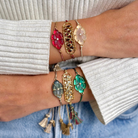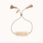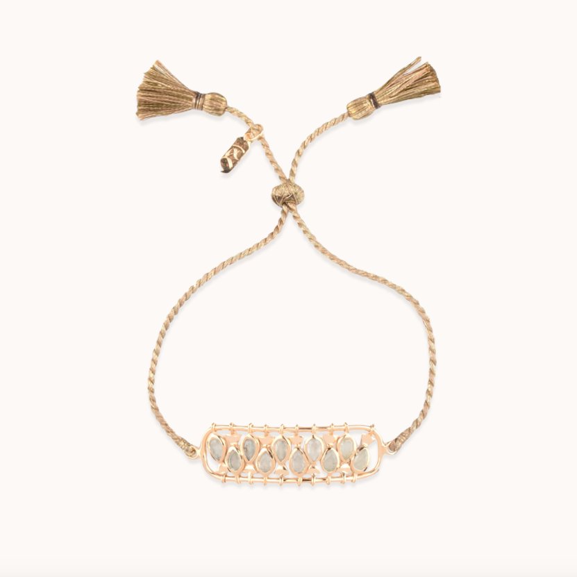 Bronze yellow gold vermeil, cotton thread and prehnite bracelet.