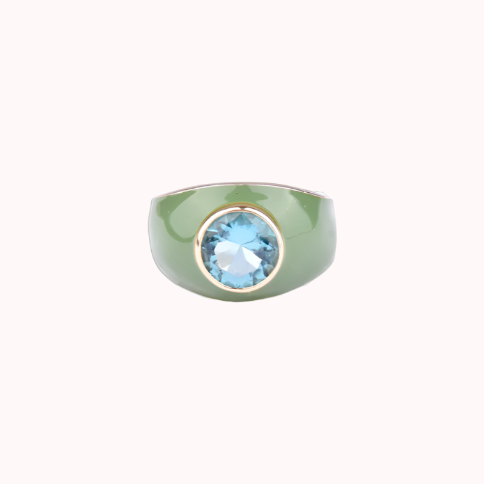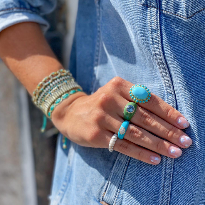 Sterling silver white rhodium plated, 9kt gold, enamel and zirconia ring.