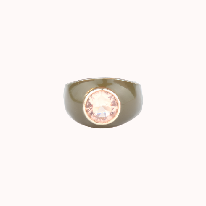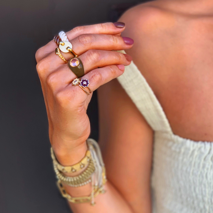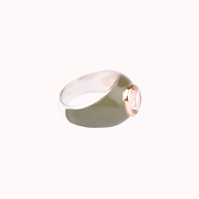 Sterling silver white rhodium plated, 9kt gold, enamel and zirconia ring.