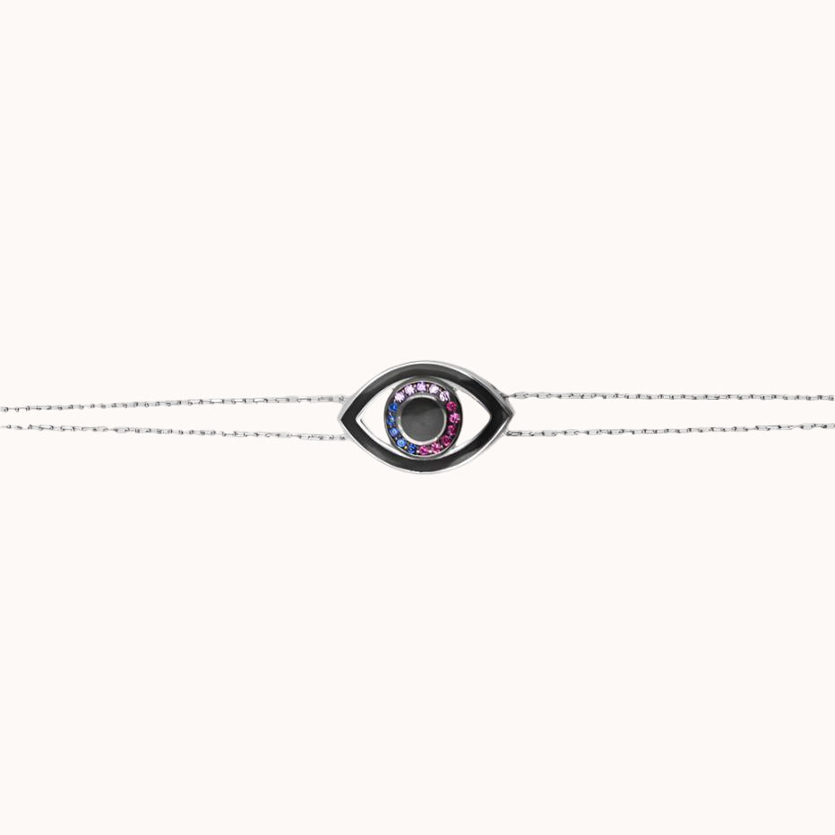 Sterling silver white rhodium plated, enamel and multicolor zirconia bracelet.