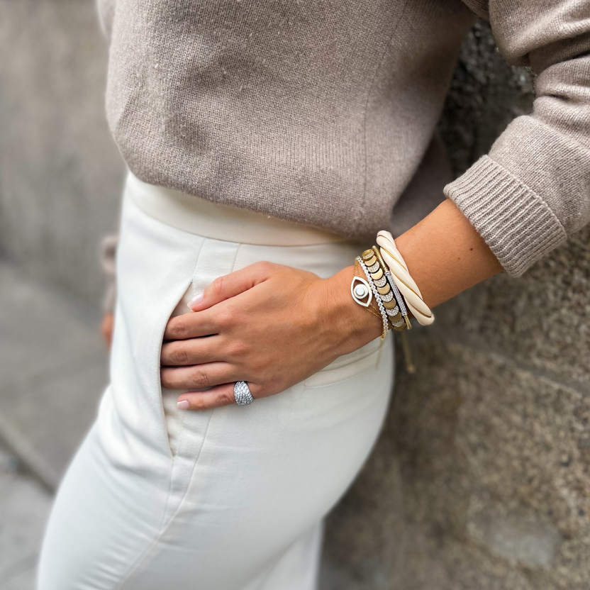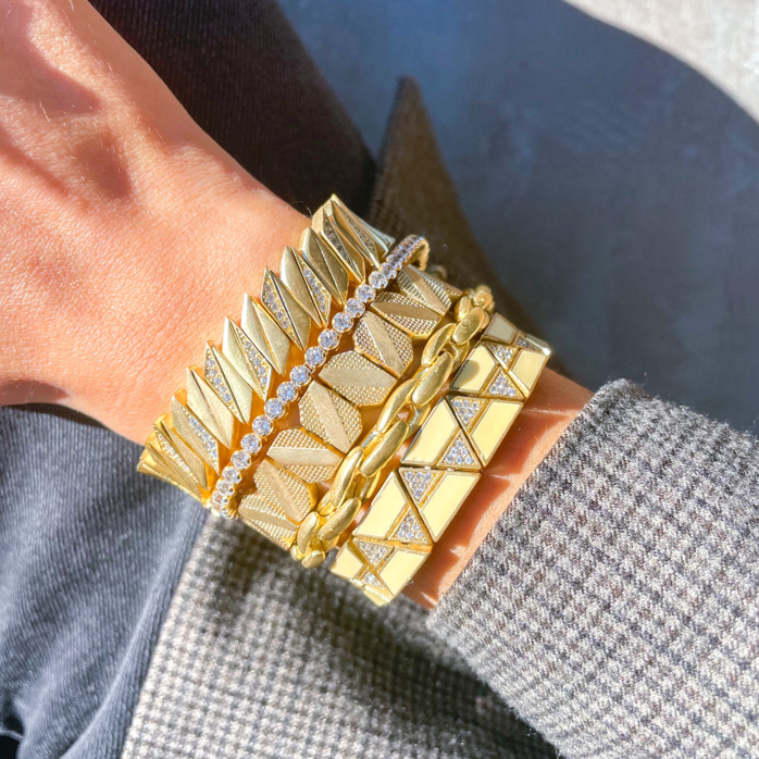 Sterling silver yellow gold vermeil and white zirconia elastic bracelet.