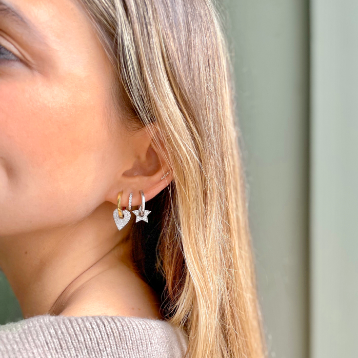 Sterling silver white rhodium plated and white zirconia ear charm.