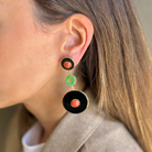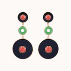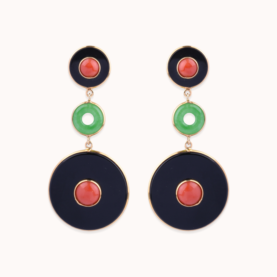 Sterling silver yellow gold vermeil, onyx, jade and coral earrings.