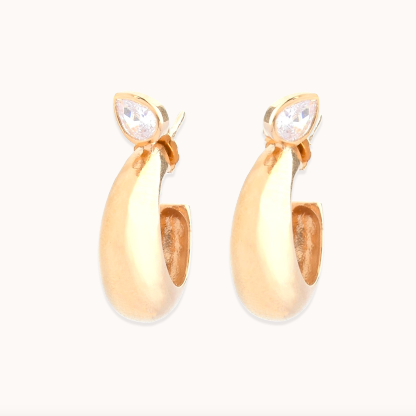 Sterling silver yellow gold vermeil and white zirconia hoops.