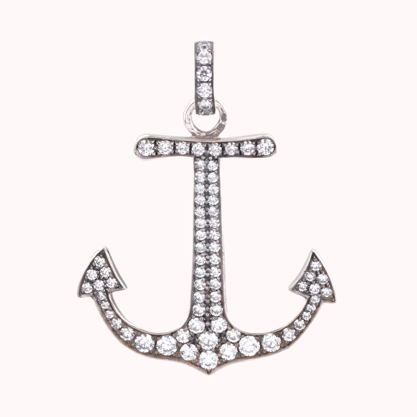 Sterling silver (oxidized) and white zirconia charm.