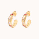 Bronze gold vermeil, garnet and pink opal hoops.