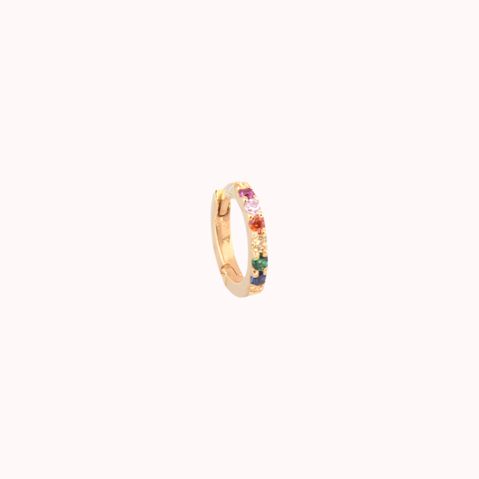 Sterling silver yellow gold vermeil and multicolor zirconia hoop.
