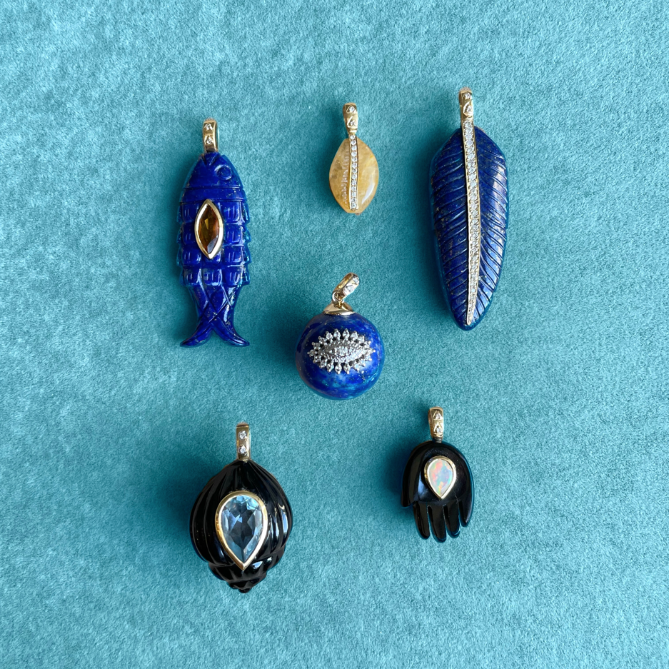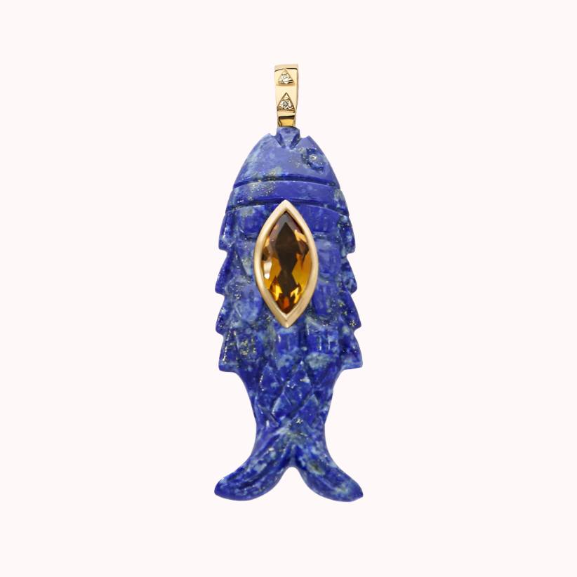18kt yellow gold, lapis lazuli, citrine and diamond charm.