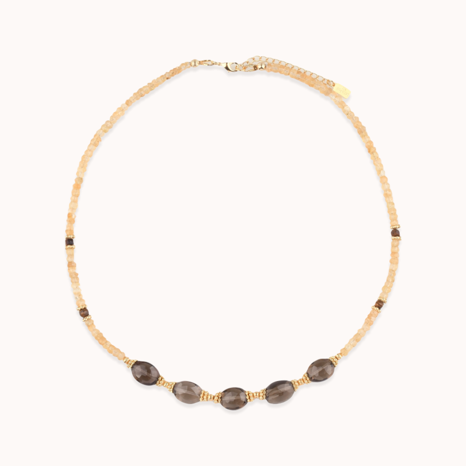 Bronze yellow gold vermeil, citrine and smokey quartz necklace.