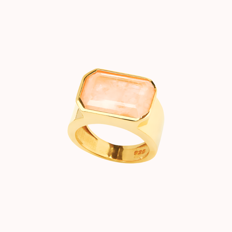 Sterling silver yellow gold vermeil and laminated (crystal) glass ring.