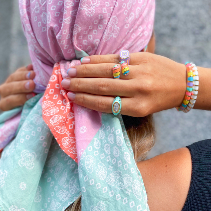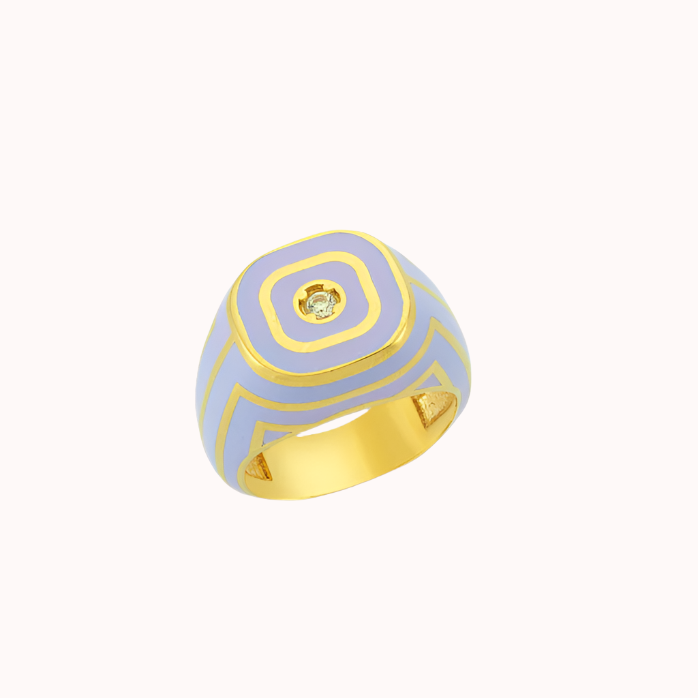 Sterling silver yellow gold vermeil, enamel and white zirconia ring.