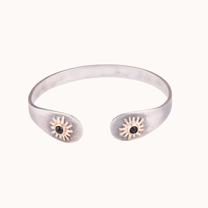 Sterling silver (oxidized), 9kt gold and onyx cuff.