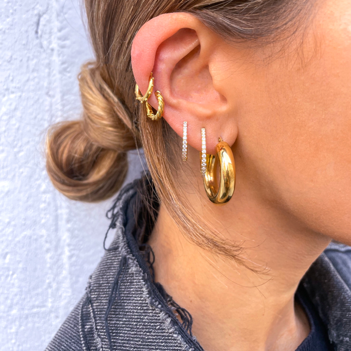 Sterling silver yellow gold vermeil and white zirconia hoop.