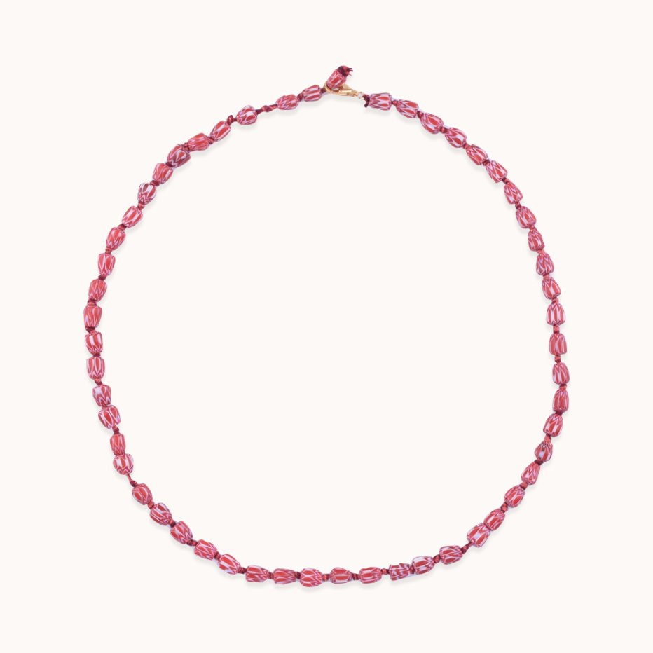 Sterling silver yellow gold vermeil, thread and krobo beads necklace.