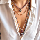 Bronze yellow gold vermeil, chocolate moonstone, tahiti pearl and white topaz necklace.