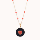 Sterling silver yellow gold vermeil, onyx and coral necklace.