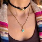 Bronze yellow gold vermeil, white topaz and thread necklace.