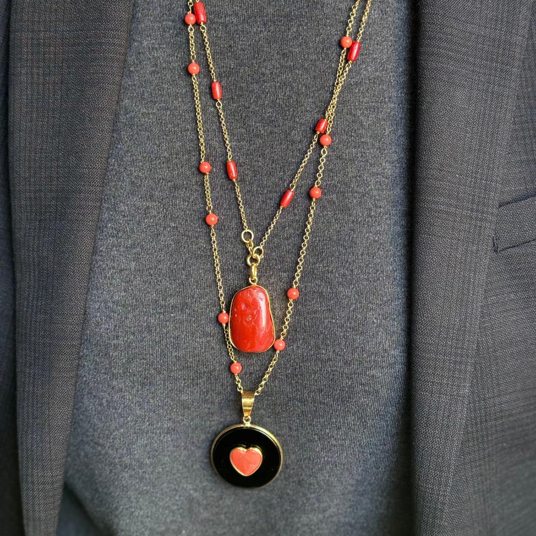 Sterling silver yellow gold vermeil and coral charm.