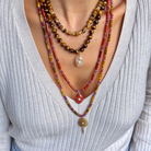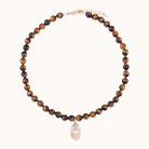 Bronze yellow gold vermeil, tiger eye, rutilated quartz and white topaz necklace.