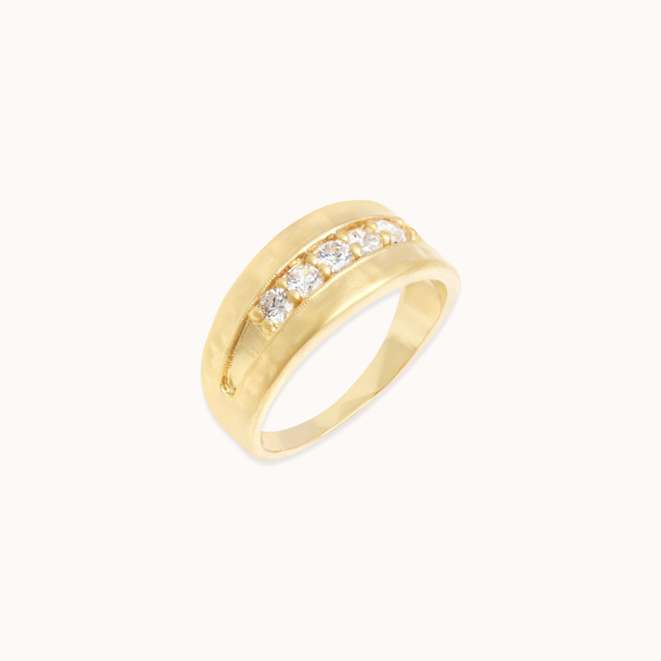 Bronze yellow gold vermeil and white zirconia ring.