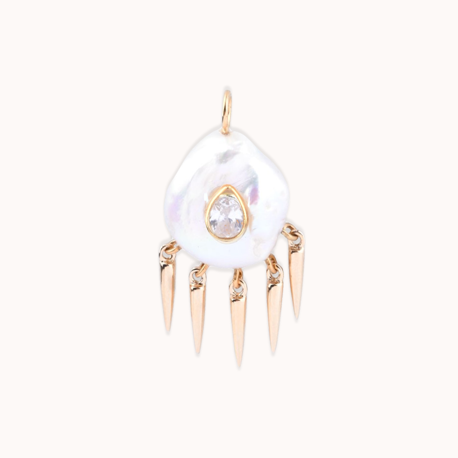 Bronze yellow gold vermeil, pearl and white topaz charm.