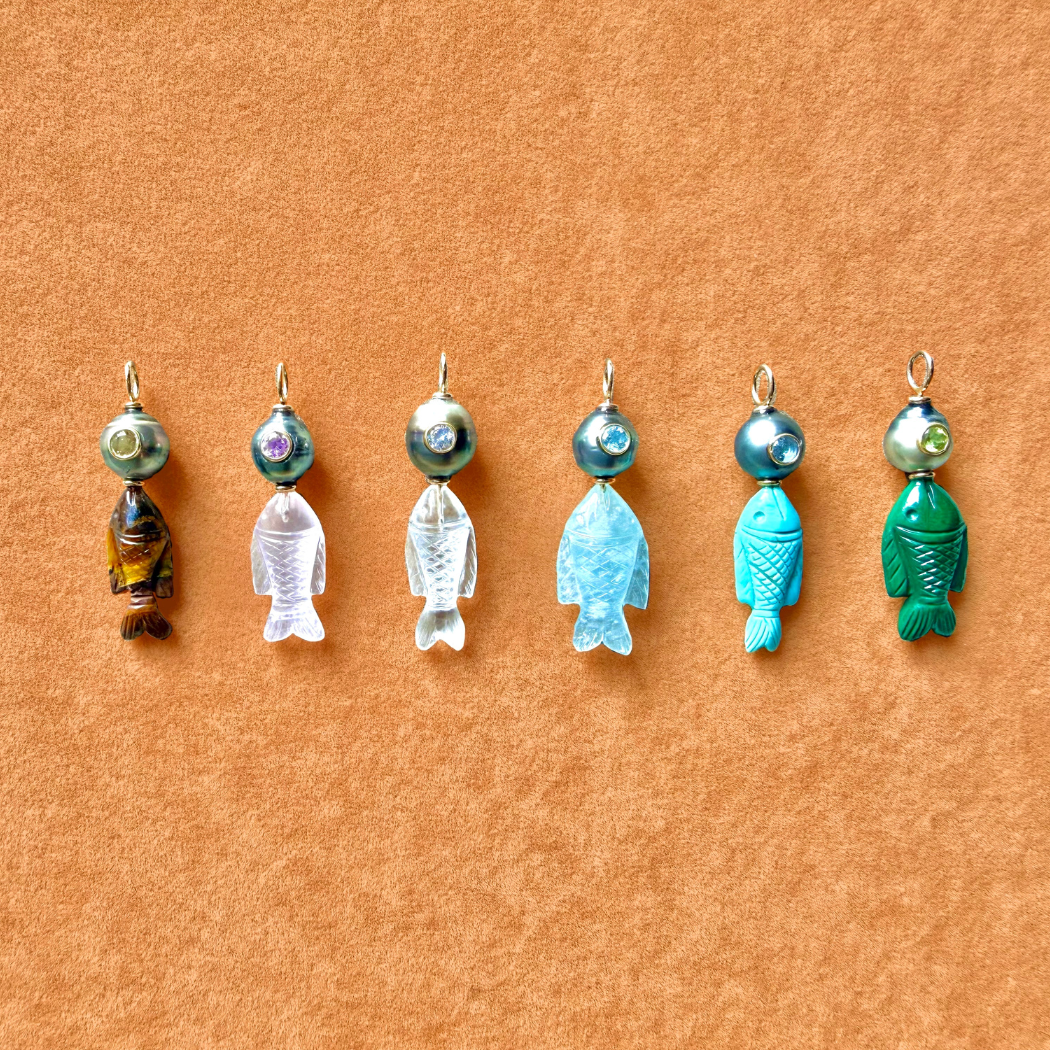 Bronze yellow gold vermeil, tiger eye, tahiti pearl and citrine charm.