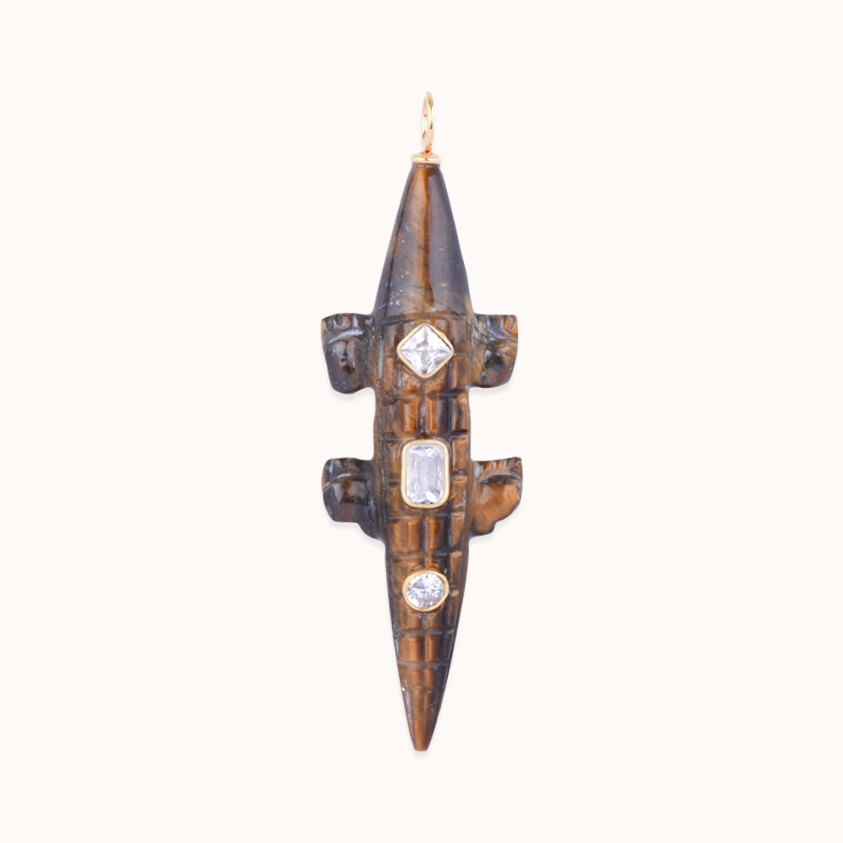 Bronze yellow gold vermeil, tiger eye and white topaz charm.