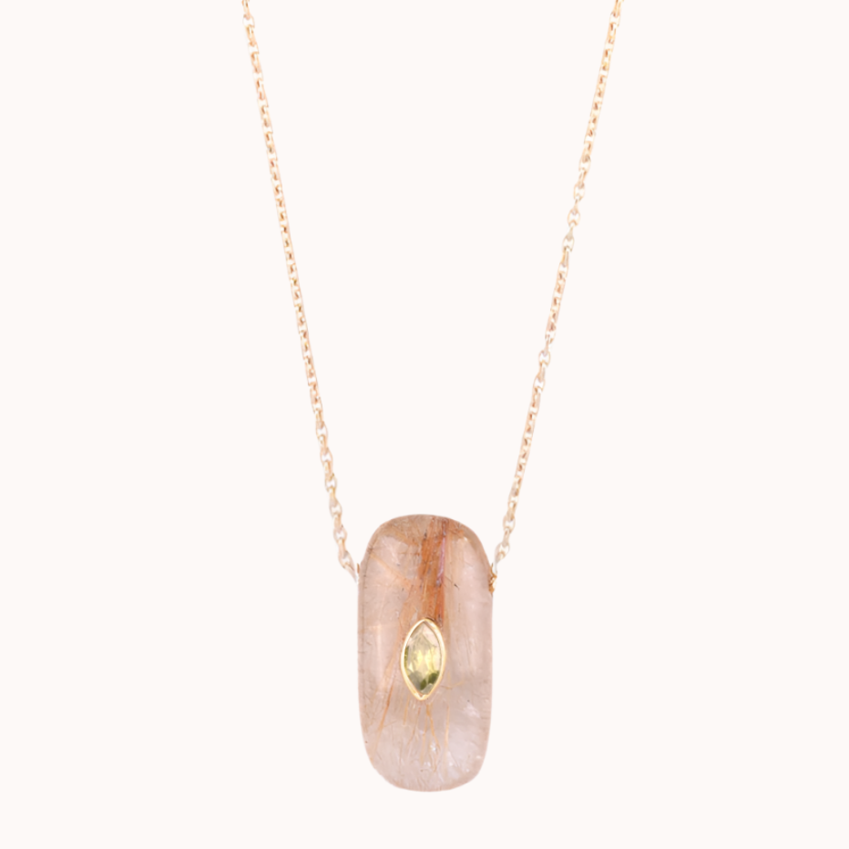 Bronze yellow gold vermeil, rutilated quartz and citrine necklace.