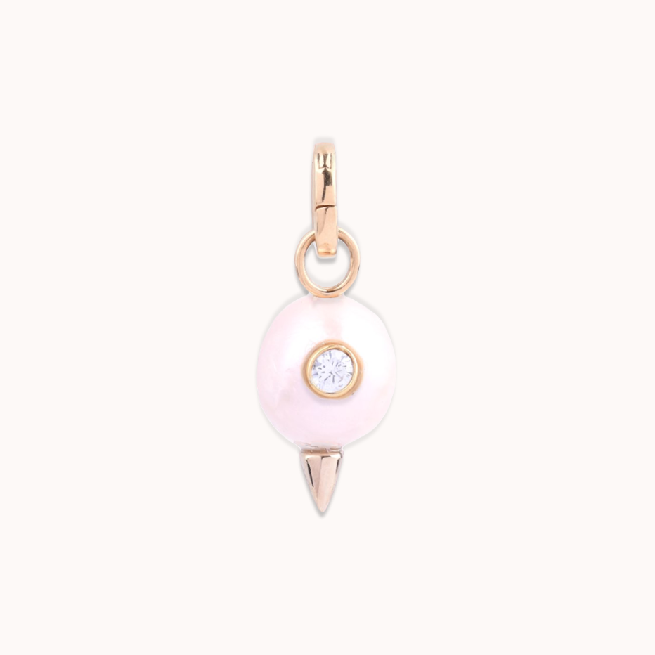 Bronze yellow gold vermeil, pearl and white topaz charm.