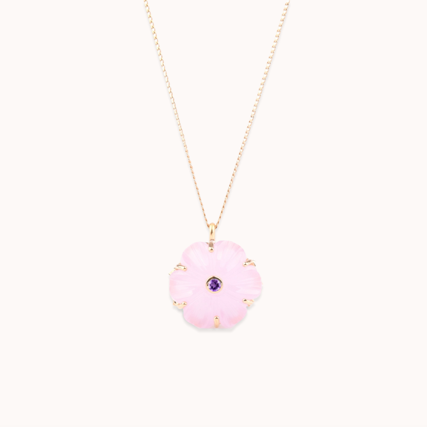 Bronze yellow gold vermeil, pink quartz and zirconia necklace.