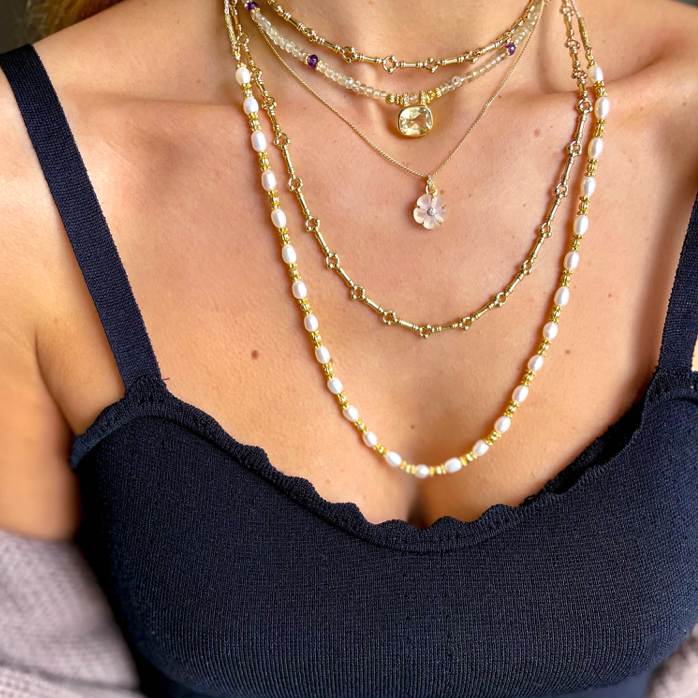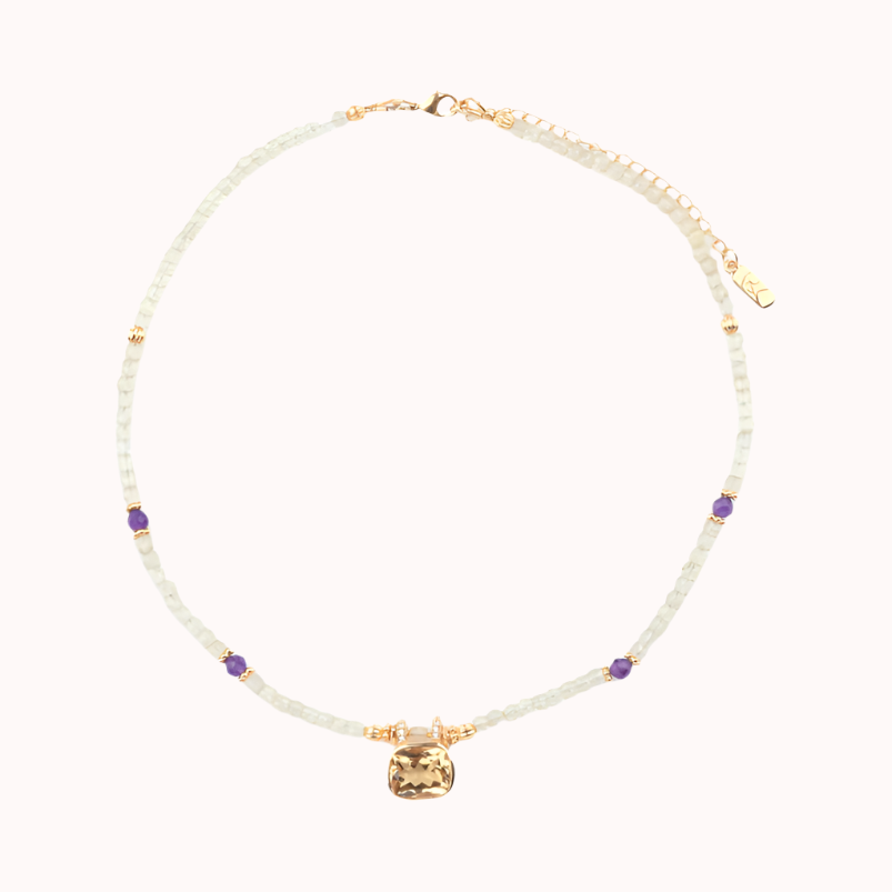Bronze yellow gold vermeil, lemon quartz, amethyst, citrine and white zirconia necklace.