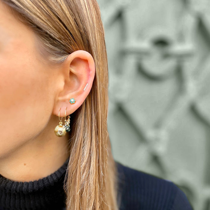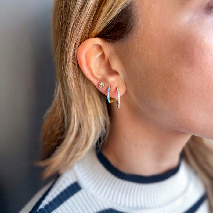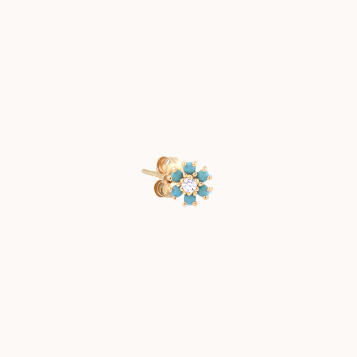Sterling silver yellow gold vermeil, turquoise and white zirconia stud.