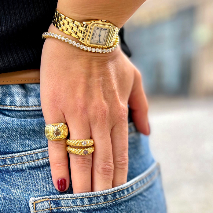 Sterling silver yellow gold vermeil and zirconia ring.