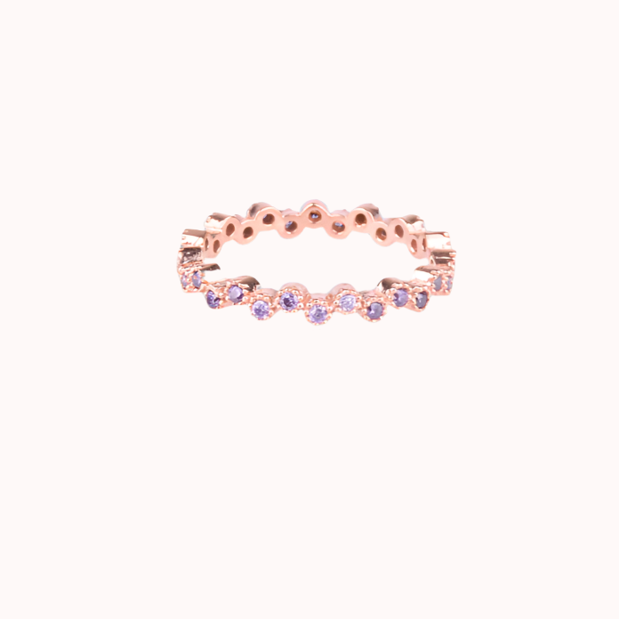 Sterling silver rose gold vermeil and purple zirconia ring.