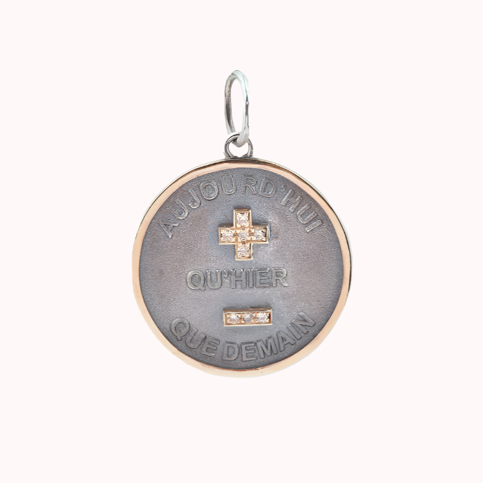 Sterling silver (oxidized), 9kt gold and champagne zirconia charm.