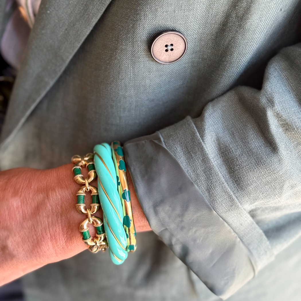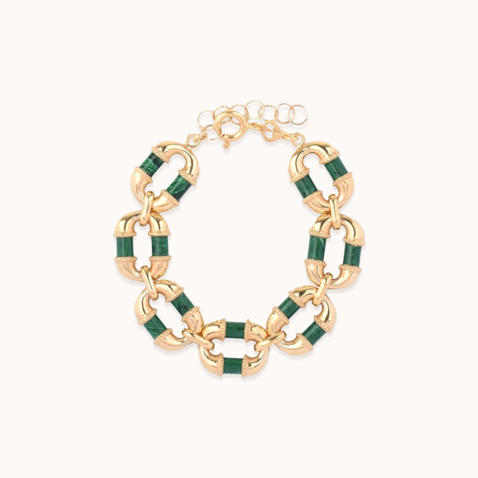 Pulseira em prata 925 vermeil e malaquite.