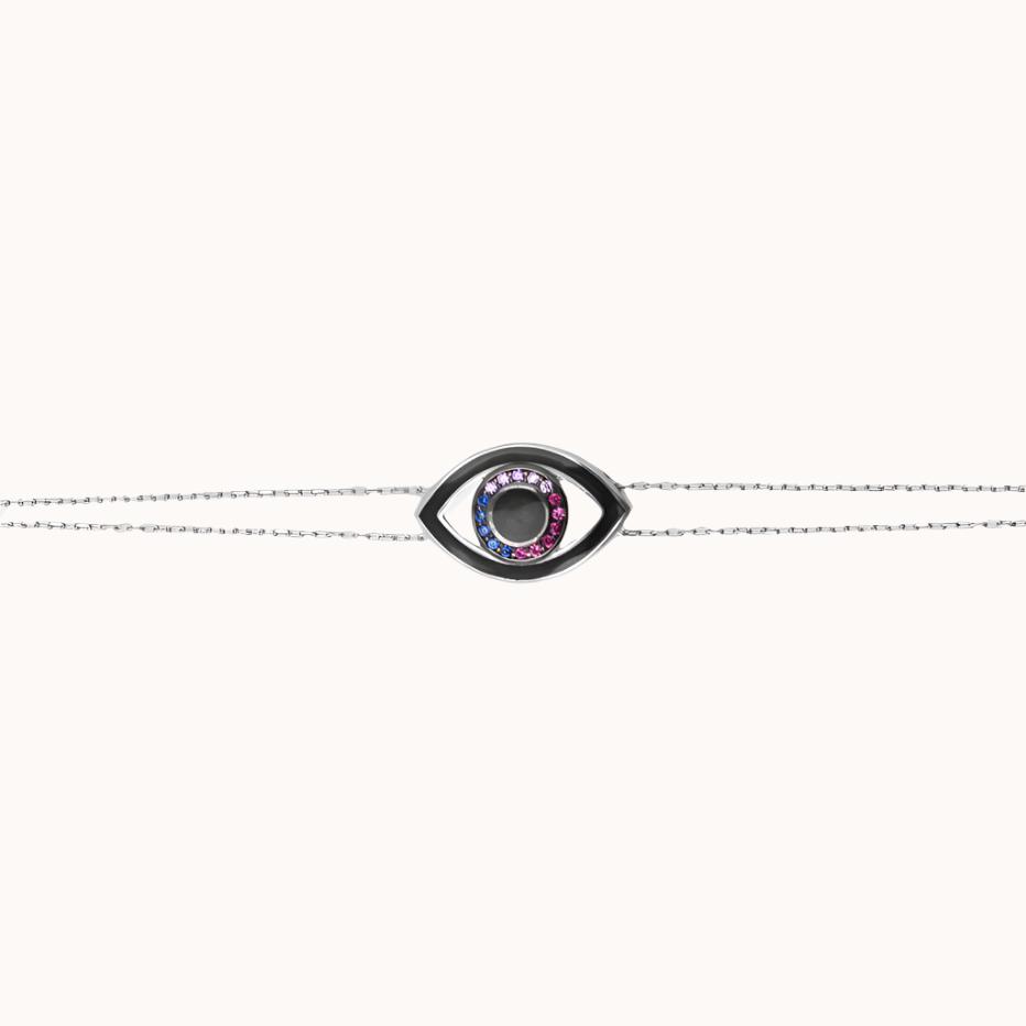 Pulseira em prata 925 ródio branco, esmalte e zircónias multicor.