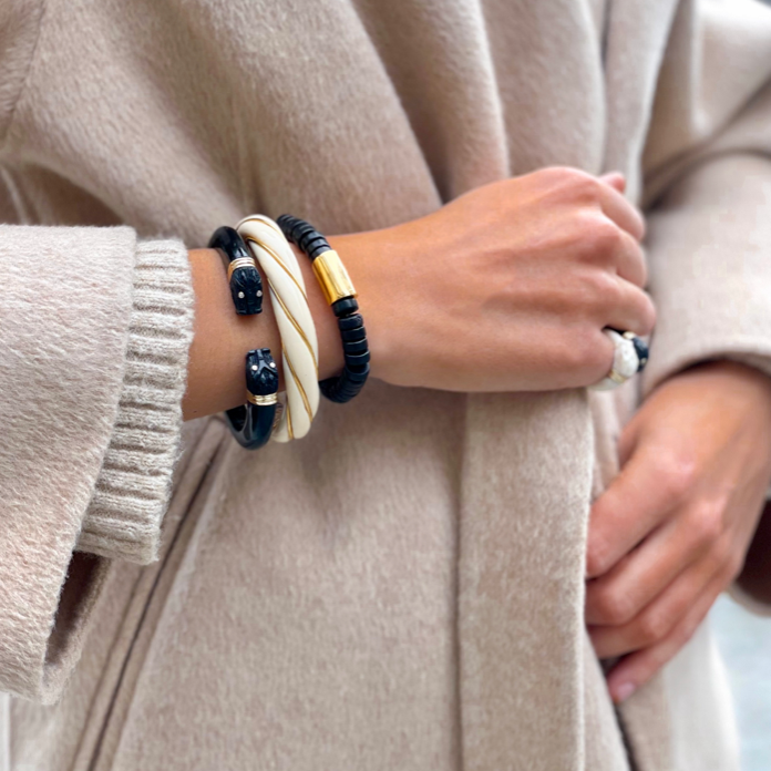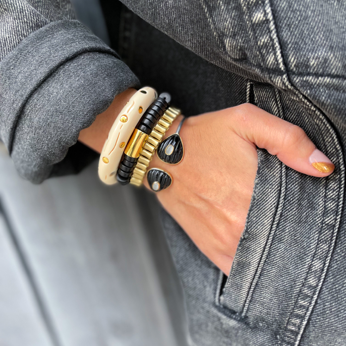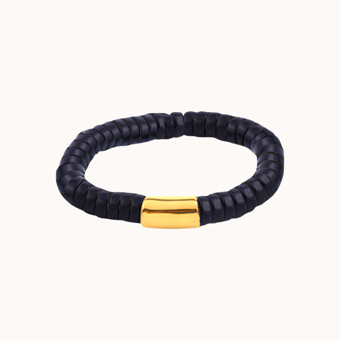 Pulseira elástica em prata 925 vermeil e howlita negra.