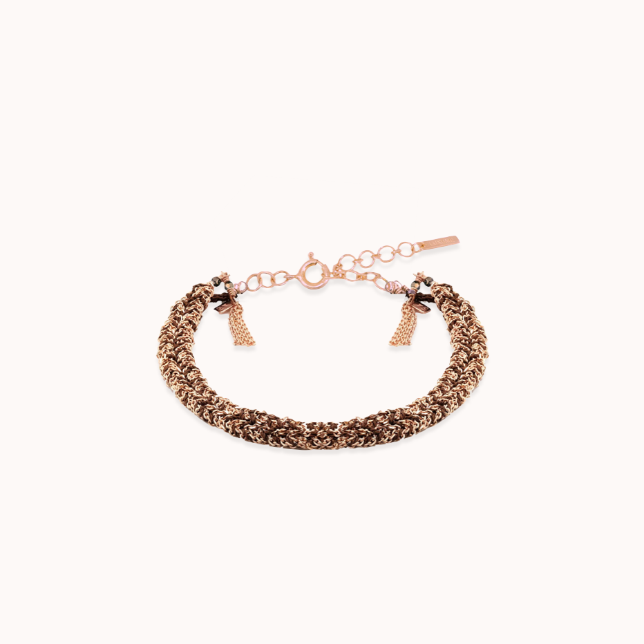 Pulseira em prata 925 vermeil (ouro rosa) e fio.
