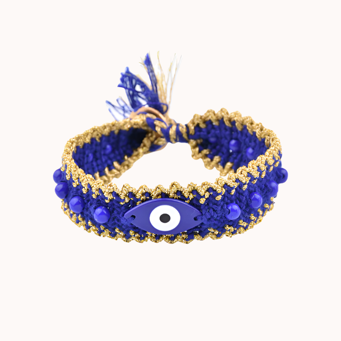 Pulseira em prata 925 vermeil e lápis lazuli tecida à mão.