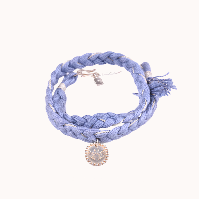 Pulseira em prata 925 com banho de ródio branco e fio de algodão.