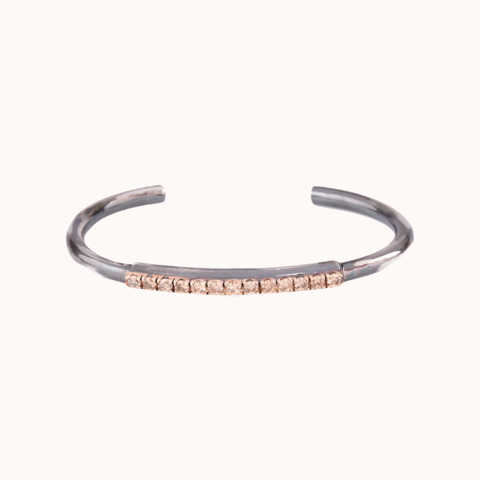 Escrava em prata 925 (oxidada), ouro 9kt e zircónias champanhe.