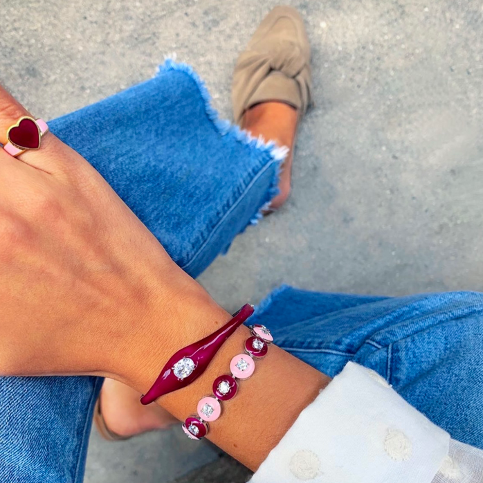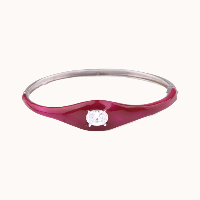 Escrava em prata 925 com banho de ródio branco, esmalte e zircónias brancas.