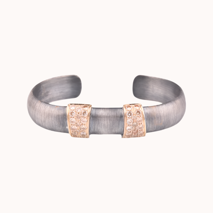 Escrava em prata 925 (oxidada), ouro 9kt e zircónias champanhe.