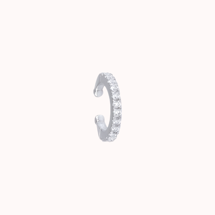Earcuff em prata 925 com banho de ródio branco e zircónias brancas.