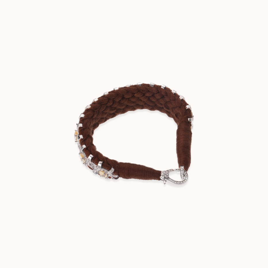 Pulseira em prata 925, fio de algodão, citrino e diamantes.