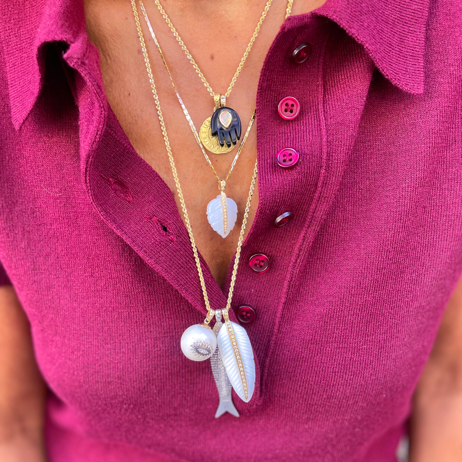Medalha em ouro amarelo de 18kt, ágata e diamantes.