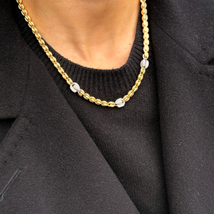 Colar em prata 925 vermeil, banho de ródio branco e zircónias brancas.
