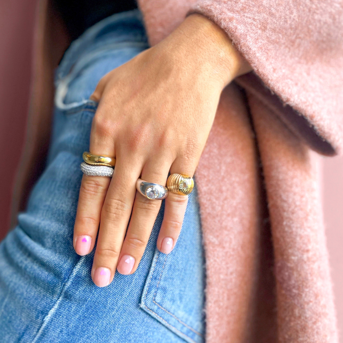 Anel em prata 925 com banho de ródio branco e zircónias brancas.