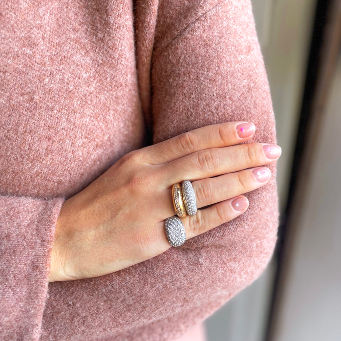 Anel em prata 925 com banho de ródio branco e zircónias brancas.